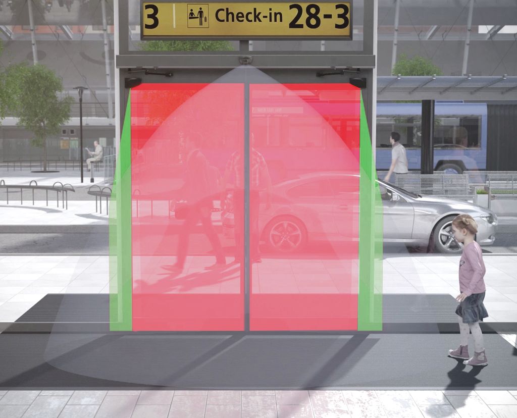 La technologie laser garantit une indépendance vis-à-vis de la nature du sol (caillebotis, tapis absorbant, sols réfléchissants, sols mouillés) et des environnements directs de la porte (main courante, radiateurs, …).