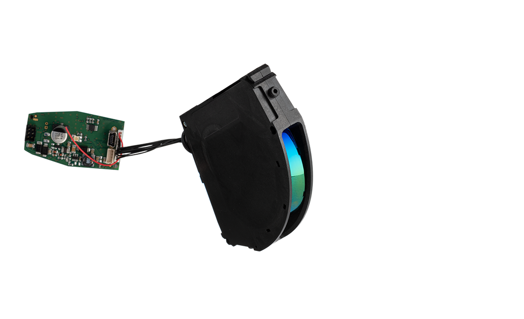 Avec une épaisseur de seulement 18 mm, le design compact et ultra-mince du LZR®-FLATSCAN U s’intègre parfaitement dans la fourche du chariot élévateur automatique ou la plateforme mobile plate des AGV/AMR.