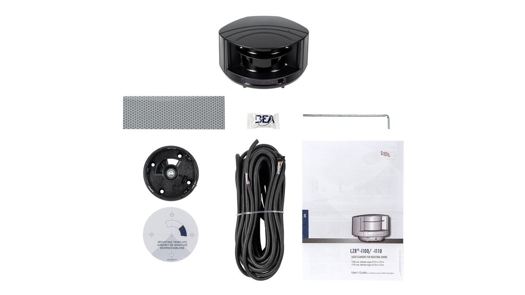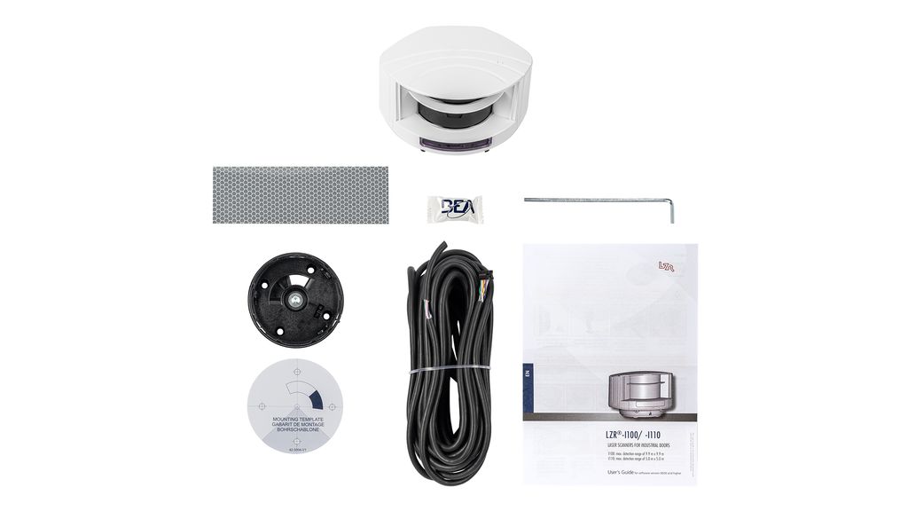 L’installation mécanique du capteur LZR-I est intuitive grâce à son gabarit de montage. Les 3 faisceaux laser visibles permettent de régler facilement la position du champ de détection. Le Teach-in adapte automatiquement le champ de détection à la dimension de la porte. Notre télécommande vous permet d’accéder à différents paramètres pour affiner votre installation.