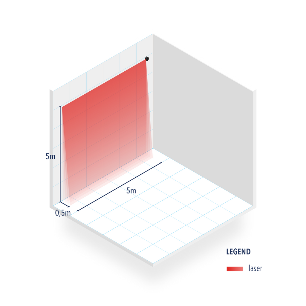 Sicurezza tridimensionale sulla soglia della porta e nelle vicinanze dell’area di chiusura con 4 tende laser ad alta risoluzione (274 misurazioni in 66 ms agli angoli di 0°, 2°, 4°, 6°).